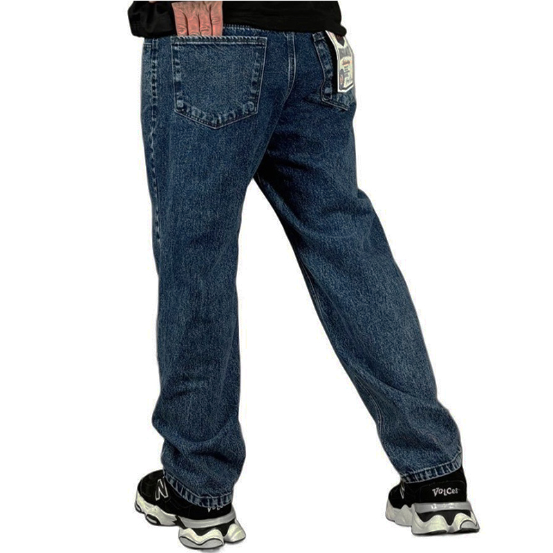 شلوار جین نیم بگ رنگ سرمه ای برفکی