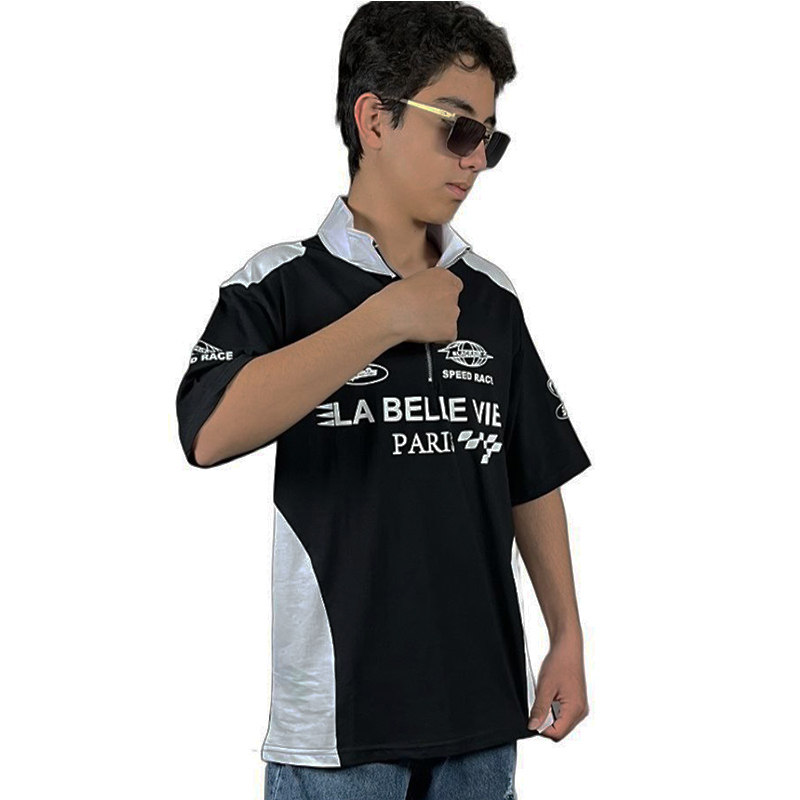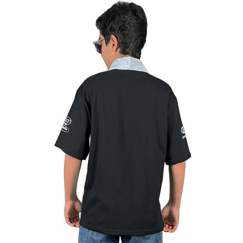 تیشرت آستین کوتاه یقه نیم زیپ رنگ مشکی