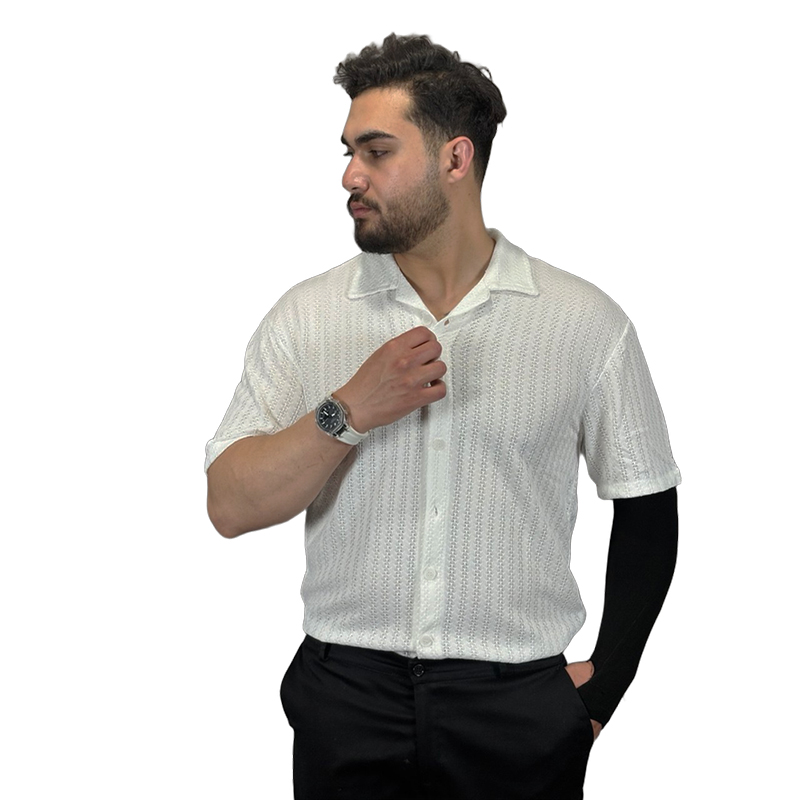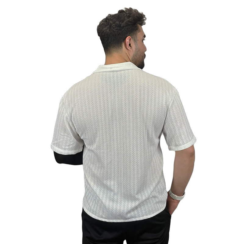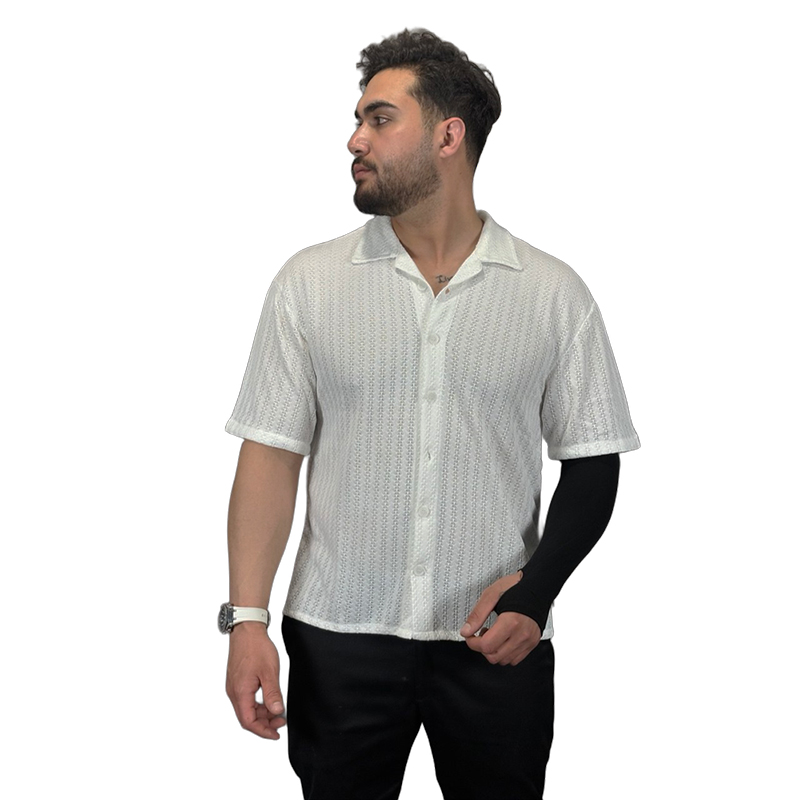 پیراهن آستین کوتاه طرح کامپیوتری خنک رنگ سفید